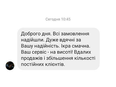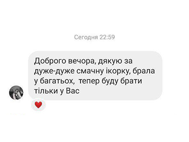 Ікра надходить від виробника і доставляється раз у 7 днів, гарантуючи свіжість.